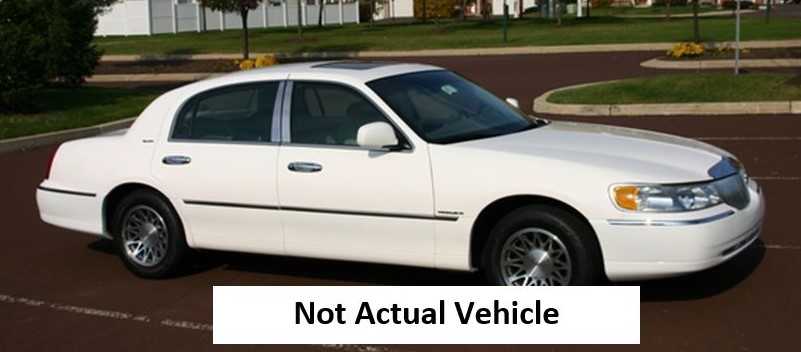 The vehicle is an early 2000's model, white, Lincoln Town Car, similar to the one in the photo below. The right front passenger side of the car struck the pedestrian. It is unknown if there is damage to the vehicle.