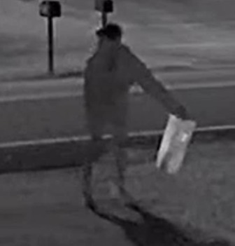 Video surveillance collected from the area shows what appears to be a light skinned, male wearing a hooded shirt and shorts.